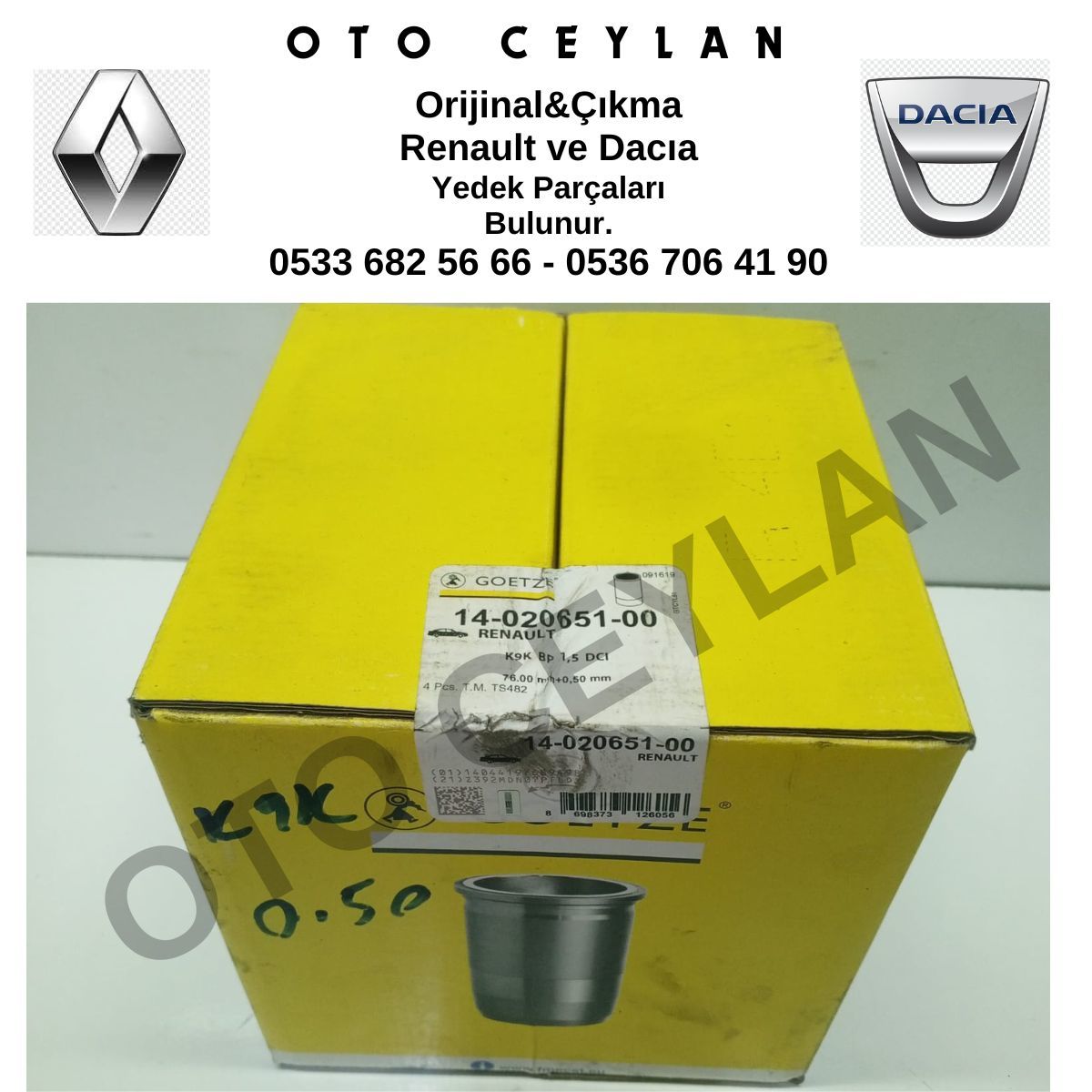 1402065100 Clio Kango Logan Megane Fluence 1.5 Dci K9K Gömlek TK 0.50 Sıfır Orijinal Goetze Marka